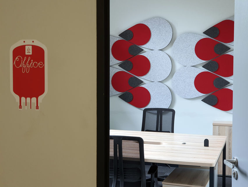 The main goal of the interiors within this building is to revert attention to the journey of blood. As mentioned above, every aspect from floor, walls, and ceilings were not only designed to be cohesive and in line with the South African Blood Service branding but was carefully selected and applied through strict green-star approved accreditation.